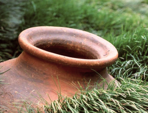 Orange wine has been a staple of Georgian tradition for centuries - since 6000 BC, to be exact. It’s made by fermenting ripe white grapes, stems, skins, pips and all, in a large clay amphora buried in the earth. The grapes ferment for up to five or six months underground, and the fermented juice is then separated out and bottled. The wine issued is acidic and amber-hued, with a bold flavour, a rich colour, and a sweet sourness to it.